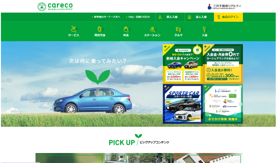 レンタル駐車場事業をうまく活用し、カーシェアサービスのなかで群を抜いています。